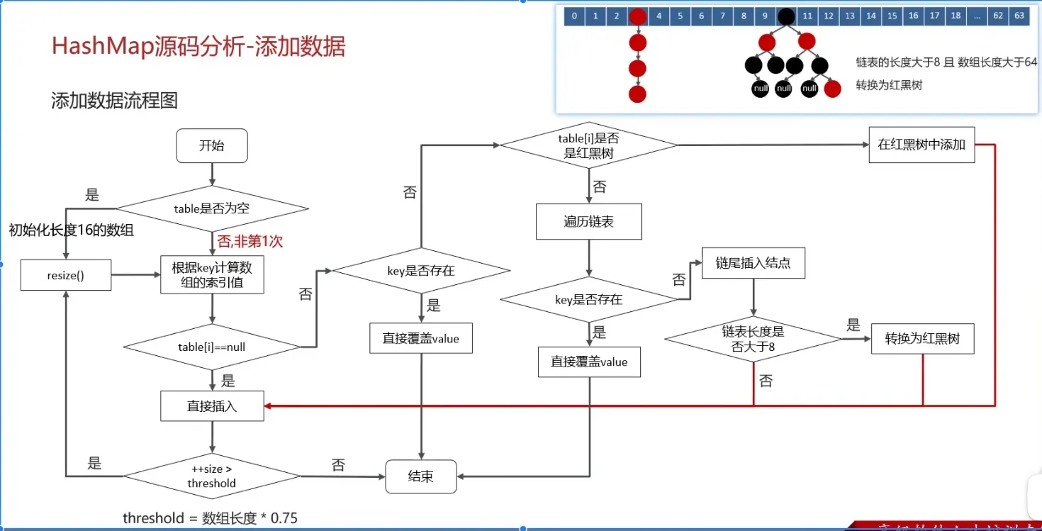 resize方法进行扩容,第一次添加数据初始化数组长度为 16,以后每次每次扩容都是达到了扩容阈值(数组长度*0.75) - 每次扩容的时候,都是扩容之前容量的 2 倍(可以保证每次都是 2 的幂);