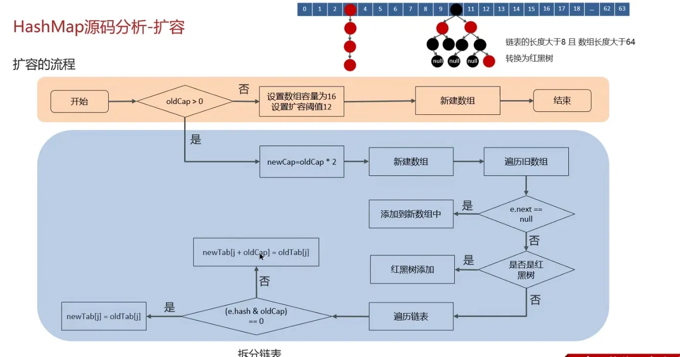 e.hash &(newCap-1)计算新数组的索引位置 - 如果是红黑树,走红黑树的添加